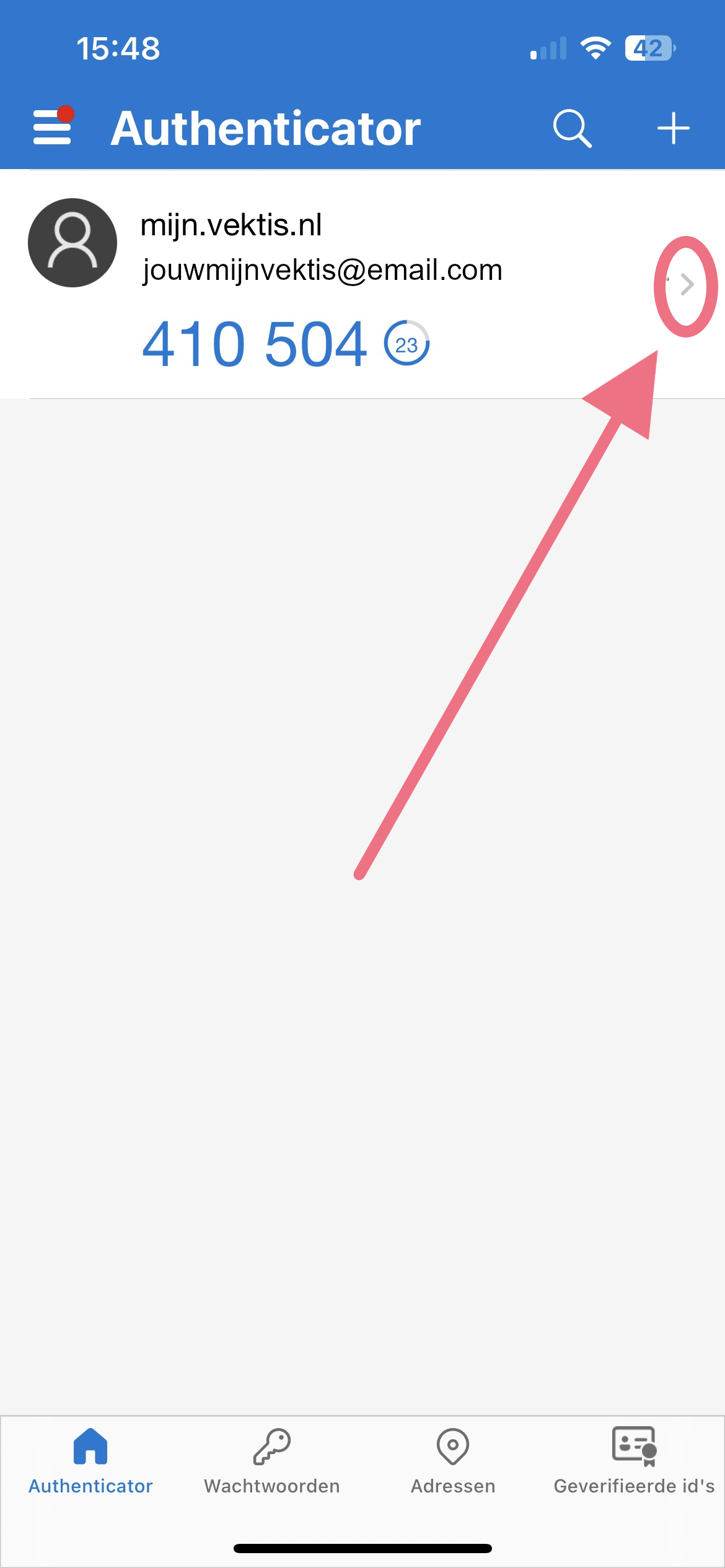 Stap 4: Je voert de code in op jouw scherm die wordt gegeven in de authenticator app.