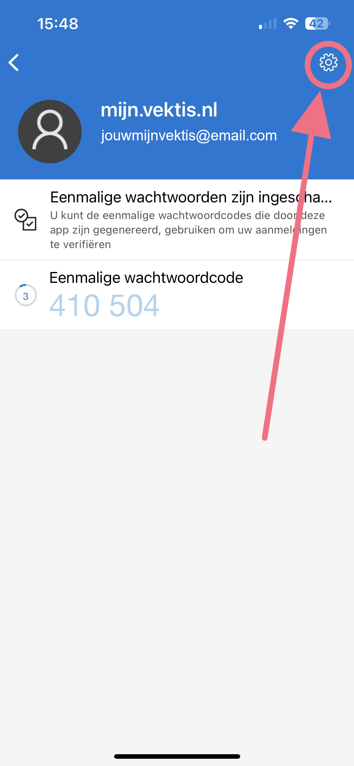 Je hebt nu multifactor op de Google authenticator app ingesteld. Voer de code die je ziet in de app in wanneer je inlogt in je Mijn Vektis-account.