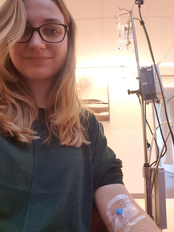 “De internist vertelde me over het geneesmiddel infliximab” vertelt Eline. Eerst stond het me een beetje tegen, want ik kan het medicijn niet thuis innemen, maar moet ervoor aan het infuus in het Radboud ziekenhuis in Nijmegen, 3 kwartier rijden van huis.” Eline gaat in de eerste anderhalve maand 3 keer 2 uur aan het infuus. “Na de eerste keer merkte ik niet zoveel verschil. Maar na de tweede keer werd de buikpijn al minder en na de derde keer voelde mijn lijf weer bijna normaal. Het leek wel een wondermiddel.“ Inmiddels hoeft Eline nog maar 1 keer in de 8 weken een uurtje in het ziekenhuis te zijn.
